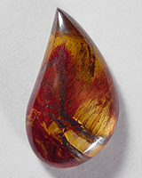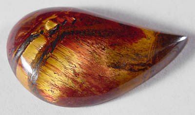 Offered here is a sweet designer cabochon of Marra Mamba tigereye, from Australia. This eye-catching material has positively arresting golden yellow and orange colored chatoyance that rolls and flashes beautifully, against a background of red jasper with dark silvery hematite running through it. In my own jewelry, stones like this little beauty practically fly out the door, sold! The cab has a very high rounded dome, a pleasing shape, and a fine polish both front and back.