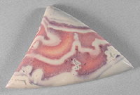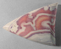 Offered here is a splendid cabochon of porcelain jasper from Mexico, called exotica. This stone features a crazy pattern in shades of old ivory with smoky rose-pinks and pastels of purplish gray. This jasper is a truly expressive material that has boatloads of designer potential, and folks just love the stuff; I'm sure you will too. The stone has a nicely rounded dome of 5.5mm, a crisp designer shape, and lustrous polish both front and back.