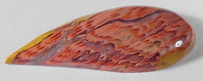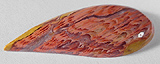 Offered here is a designer cabochon of howardite (an unsual and rare form of opalized silicated tuff), from northern Nevada. Sometimes called 'rattlesnake stone', it has wonderfully nice coloration and figure, reminding me of crazy venetian blinds or zippers, oddly enough. The darkest areas you see in the pic are actually highly translucent, giving the stone an amazing quality of depth. It has a high rounded dome, a gracefully curvy shape, and a slick glassy polish both front and back.